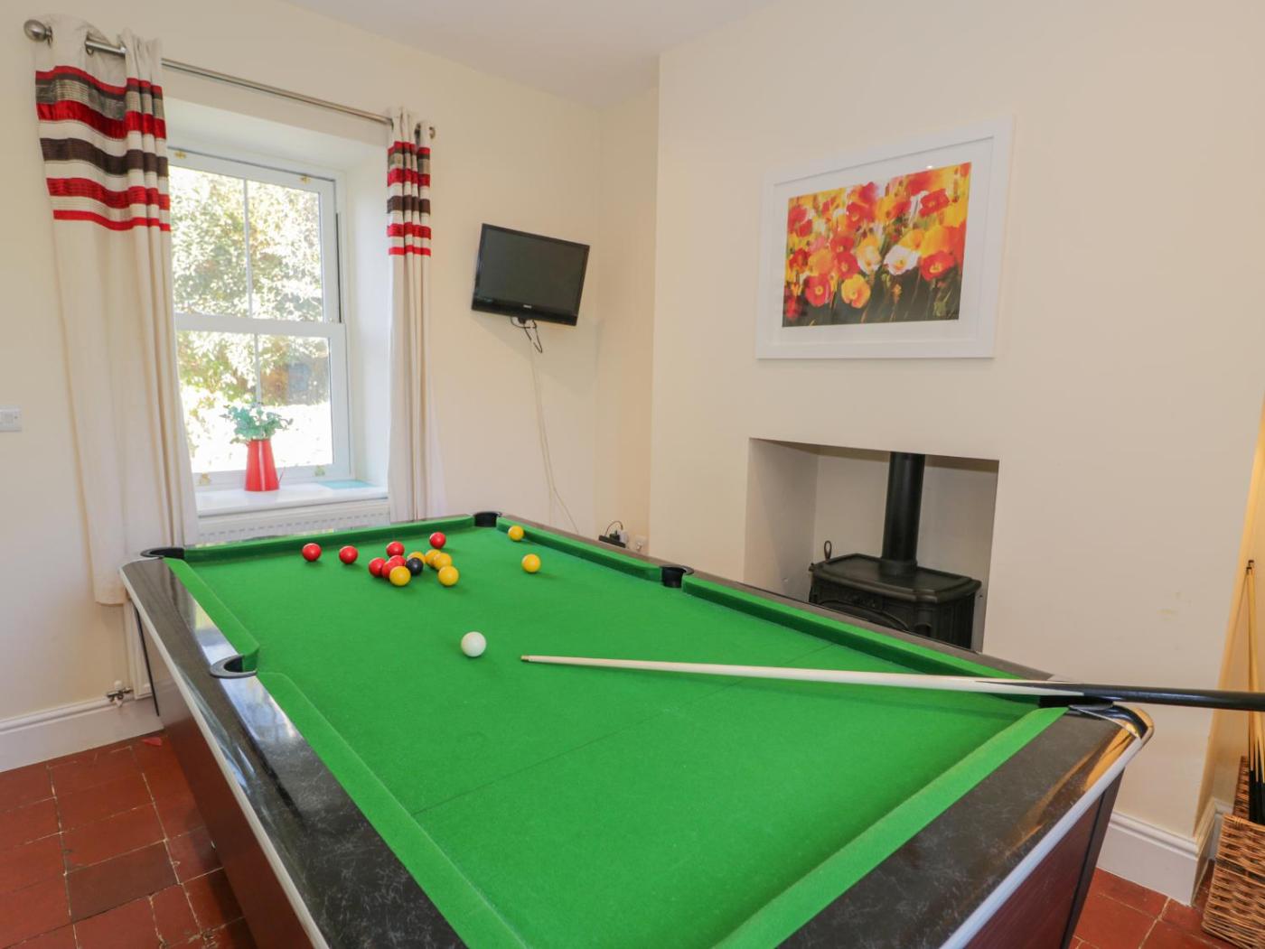 The spacious holiday home comes with 6 bedrooms, a fully equipped kitchen with a dishwasher and a fridge, and 4 bathrooms with a hot tub and bath. There is also a seating area and a fireplace.