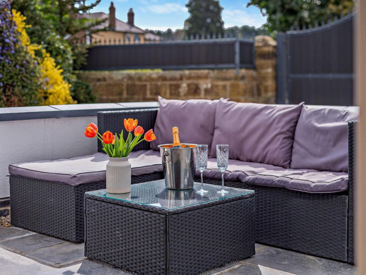 Offering a garden and garden view, 2 Bed House with Hot Tub Great Ayton - TOP House is situated in Great Ayton, 20 km from Redcar Racecourse and 35 km from Helmsley Castle. With free private parking, the property is 49 km from Flamingo Land Theme Park and 8.6 km from Middlesbrough Cathedral. Featuring free WiFi throughout the property, the non-smoking holiday home has a hot tub.