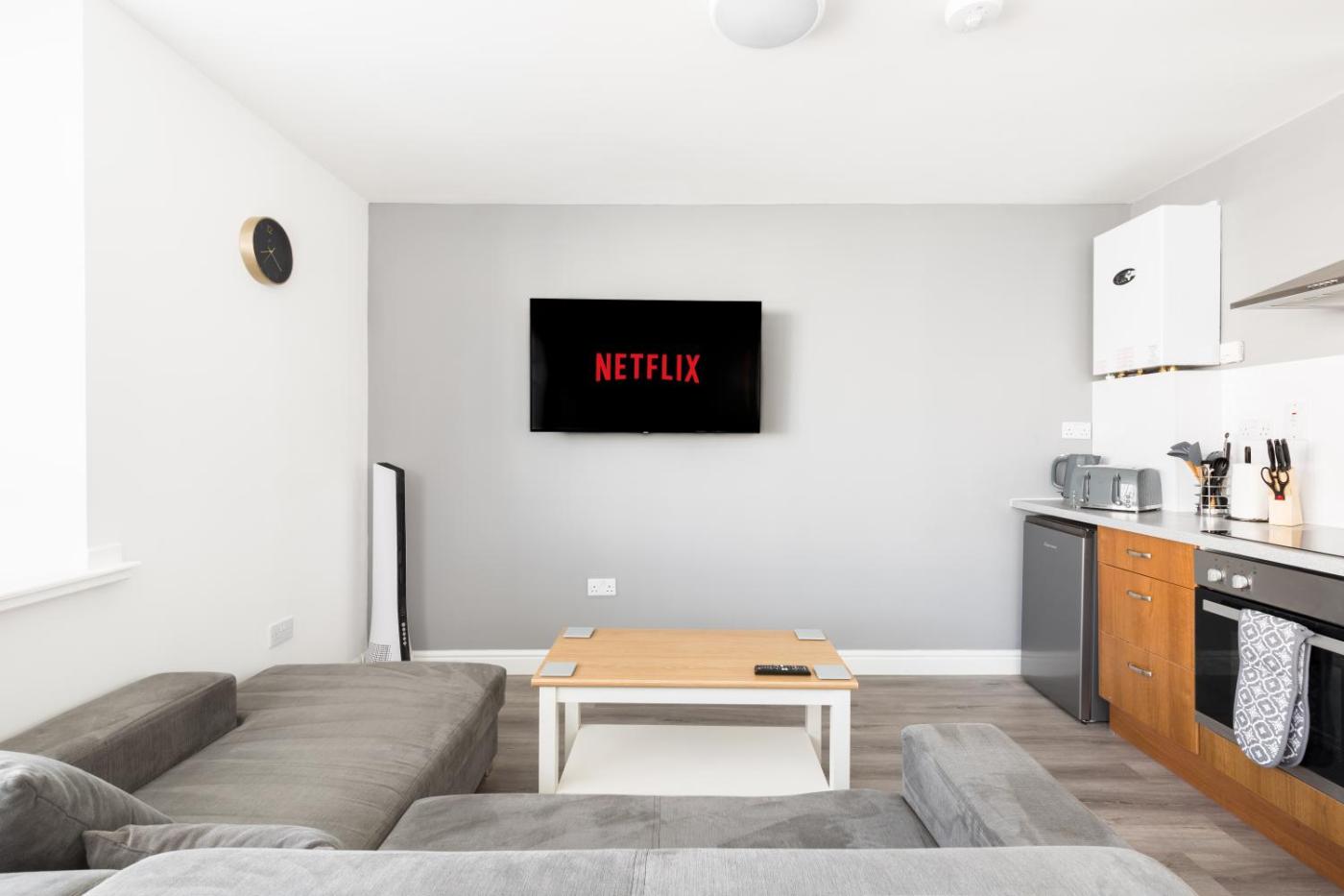 Two-Bedroom Apartment. In the well-equipped kitchen, guests will find a stovetop, a refrigerator, kitchenware and an oven. The spacious apartment offers a flat-screen TV with streaming services, a washing machine, a private entrance, soundproof walls as well as garden views. The unit has 2 beds.
