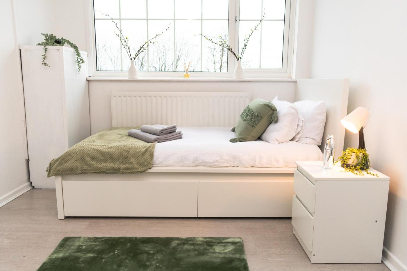 Three-Bedroom House. Boasting a private entrance, this holiday home includes 1 living room, 3 separate bedrooms and 1 bathroom with a bath and a shower. In the fully equipped kitchen, guests will find a stovetop, a refrigerator, an oven and a microwave. The holiday home offers a washing machine, a tea and coffee maker, a seating area, a dining area, as well as a flat-screen TV with streaming services. The unit has 5 beds.
