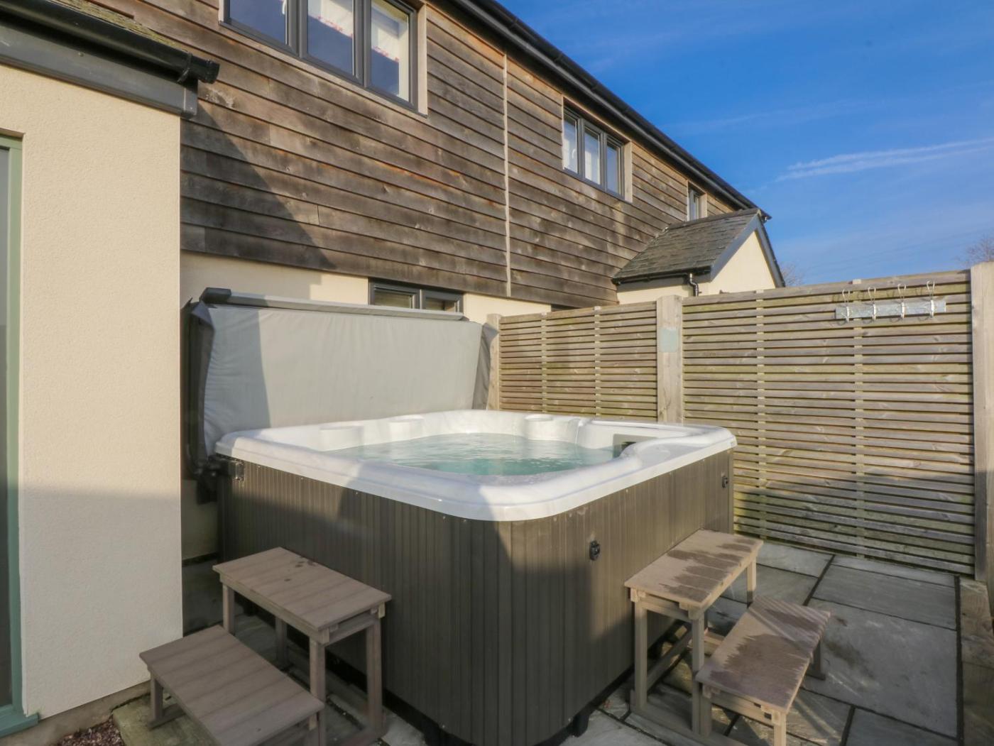 Holiday Home. This holiday homes standout features are the hot tub and fireplace. This spacious holiday home includes 3 bedrooms, a seating area with a sofa and 3 bathrooms with a walk-in shower. The kitchen is fitted with a stovetop, a refrigerator and a dishwasher. The holiday home offers a washing machine, a dining area, a wardrobe, heating, as well as a TV. The unit has 3 beds.