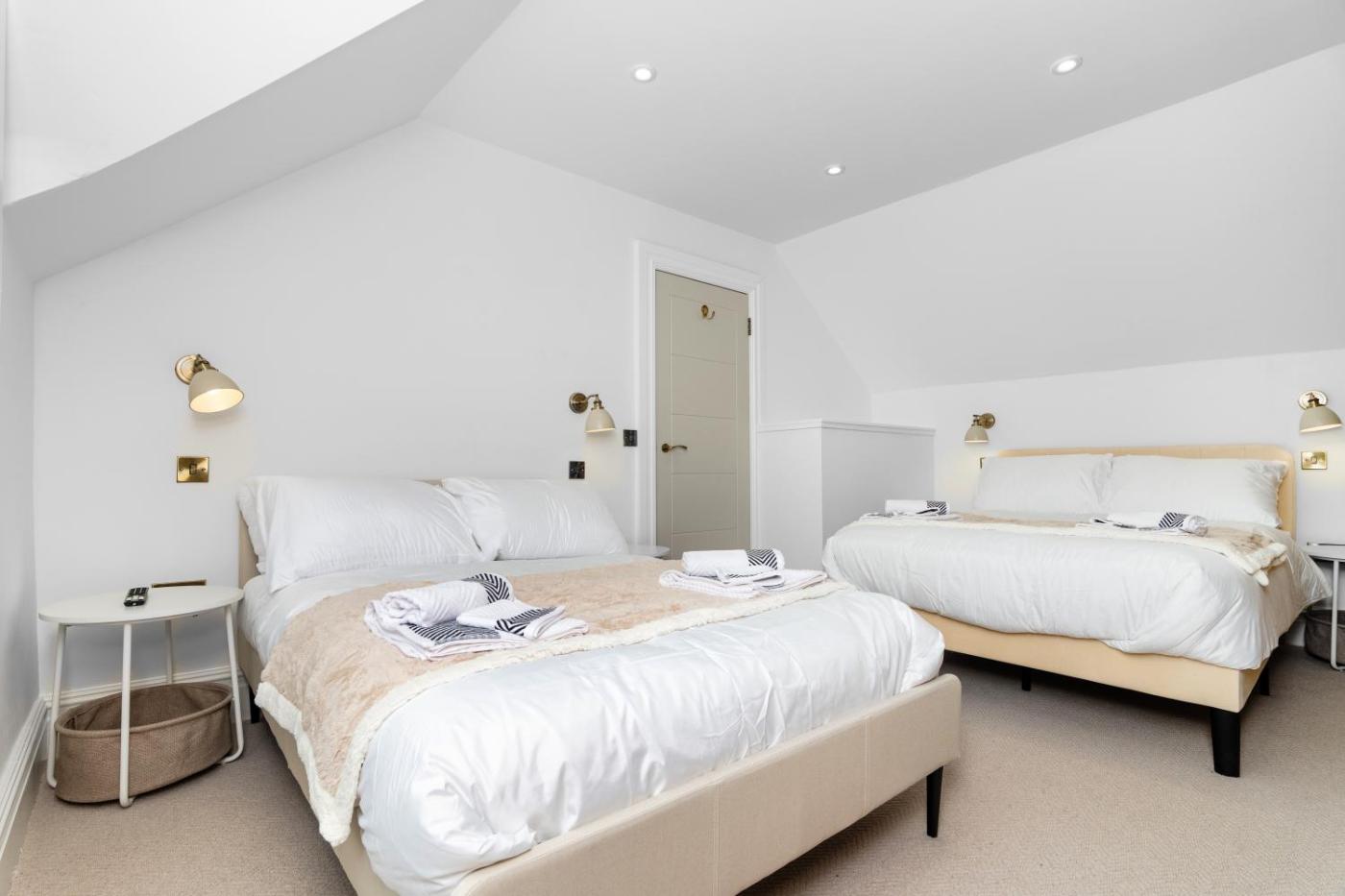 Two-Bedroom House. Boasting a private entrance, this holiday home comes with 1 living room, 2 separate bedrooms and 1 bathroom with a bath and a shower. Guests can make meals in the kitchen that features a stovetop, a refrigerator, a dishwasher and an oven. The holiday home features a washing machine, a seating area, a dining area, a flat-screen TV with streaming services, as well as garden views. The unit has 4 beds.