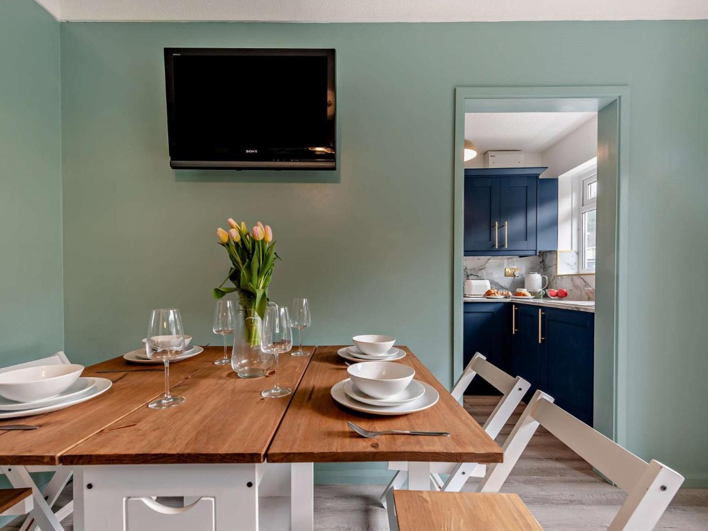 Two-Bedroom House. The holiday home features 2 bedrooms, 1 bathroom and a kitchen. Meals can be prepared in the kitchen, which is equipped with a refrigerator, kitchenware and an oven. This holiday home has a high chair for children, heating, a TV and garden views. The unit offers 2 beds.