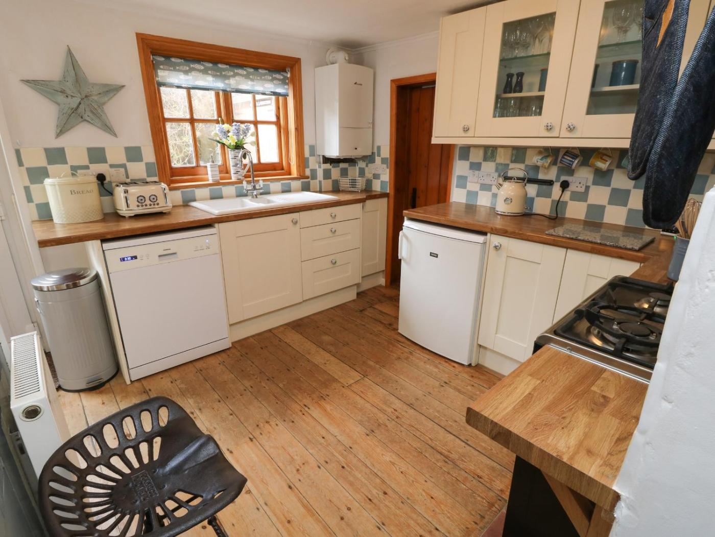 The holiday home features 2 bedrooms, a TV, a fully equipped kitchen with a dishwasher and an oven, a washing machine, and 1 bathroom with a shower. There is also a seating area and a fireplace.