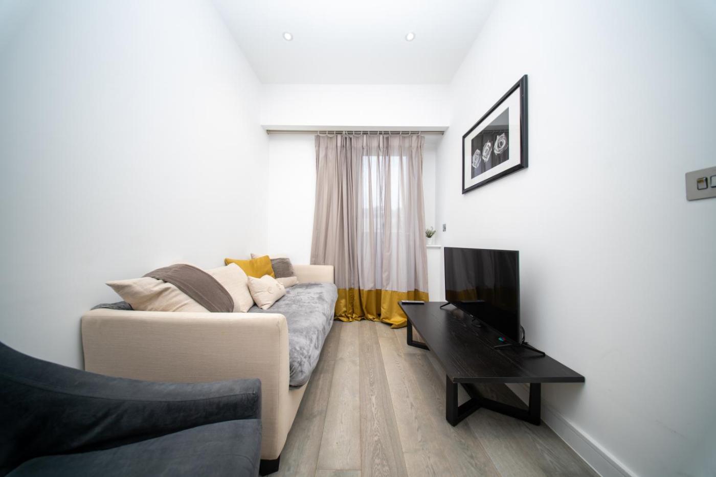 One-Bedroom Apartment. This apartment includes 1 living room, 1 separate bedroom and 1 bathroom with a bath and a shower. The apartments kitchen is available for cooking and storing food. Boasting a balcony with city views, this apartment also offers an electric kettle and a flat-screen TV. The unit has 2 beds.