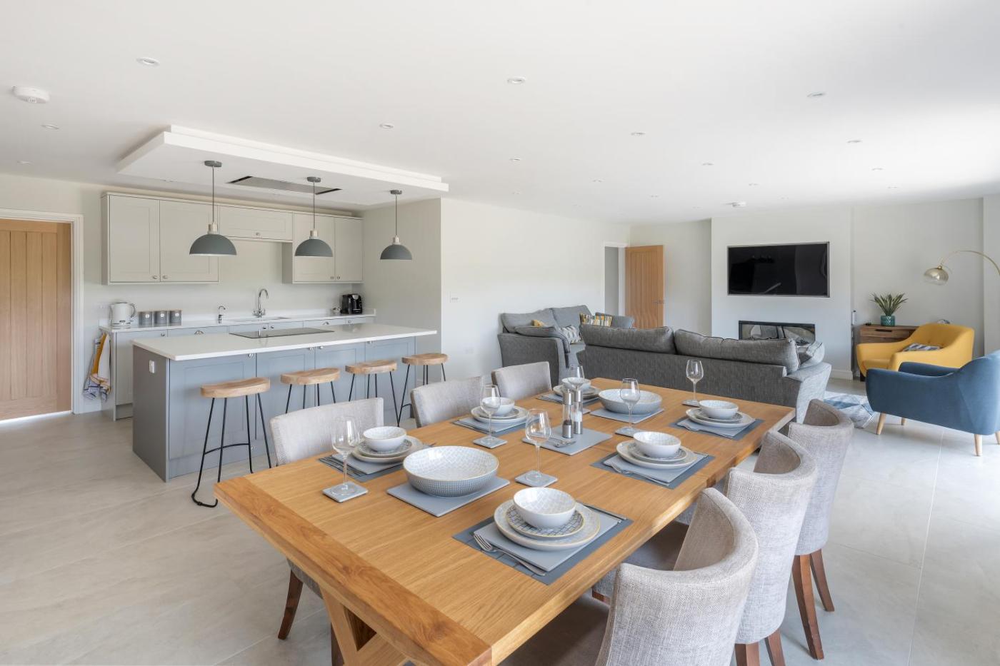 Holiday Home. This holiday home features a fireplace. Boasting a private entrance, this holiday home includes 1 living room, 5 separate bedrooms and 5 bathrooms with a walk-in shower and a bath. Guests will find a stovetop, a refrigerator, a dishwasher and kitchenware in the well-equipped kitchen. The holiday home also features a barbecue. Featuring a terrace with garden views, this holiday home also offers a washing machine and a flat-screen TV. The unit has 7 beds. ;