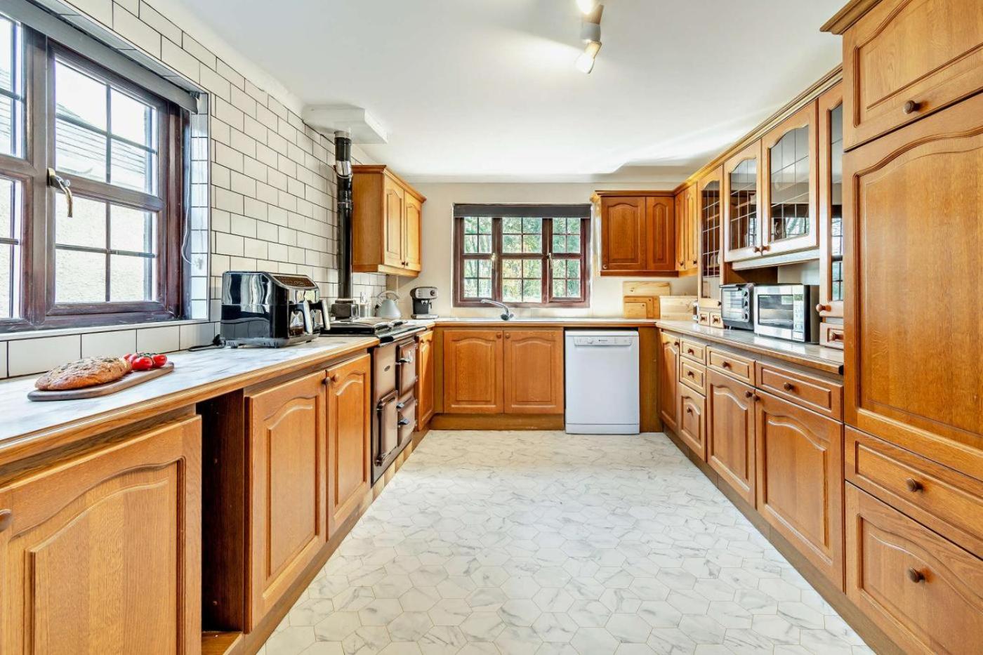 The kitchen comes with a dishwasher and kitchenware.