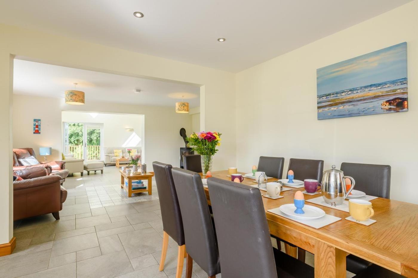 Five-Bedroom House. This holiday home features a fireplace. This holiday home features a private bathroom and heating. In the fully equipped kitchen, guests will find a dishwasher, kitchenware, an oven and a microwave. The holiday home provides a washing machine, a private entrance, a high chair for children, a TV, as well as garden views.